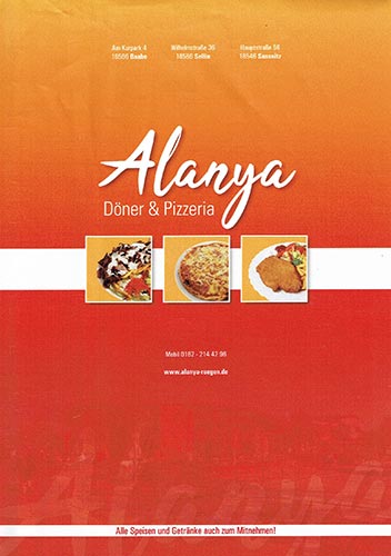 Pizza Margarita, Pizza Salami, Pizza Schinken, Pizza Prosciotto, Pizza Tonno, Pizza Scampi, Pizza Alanya, Pizza Hawaii, Pizza Istanbul