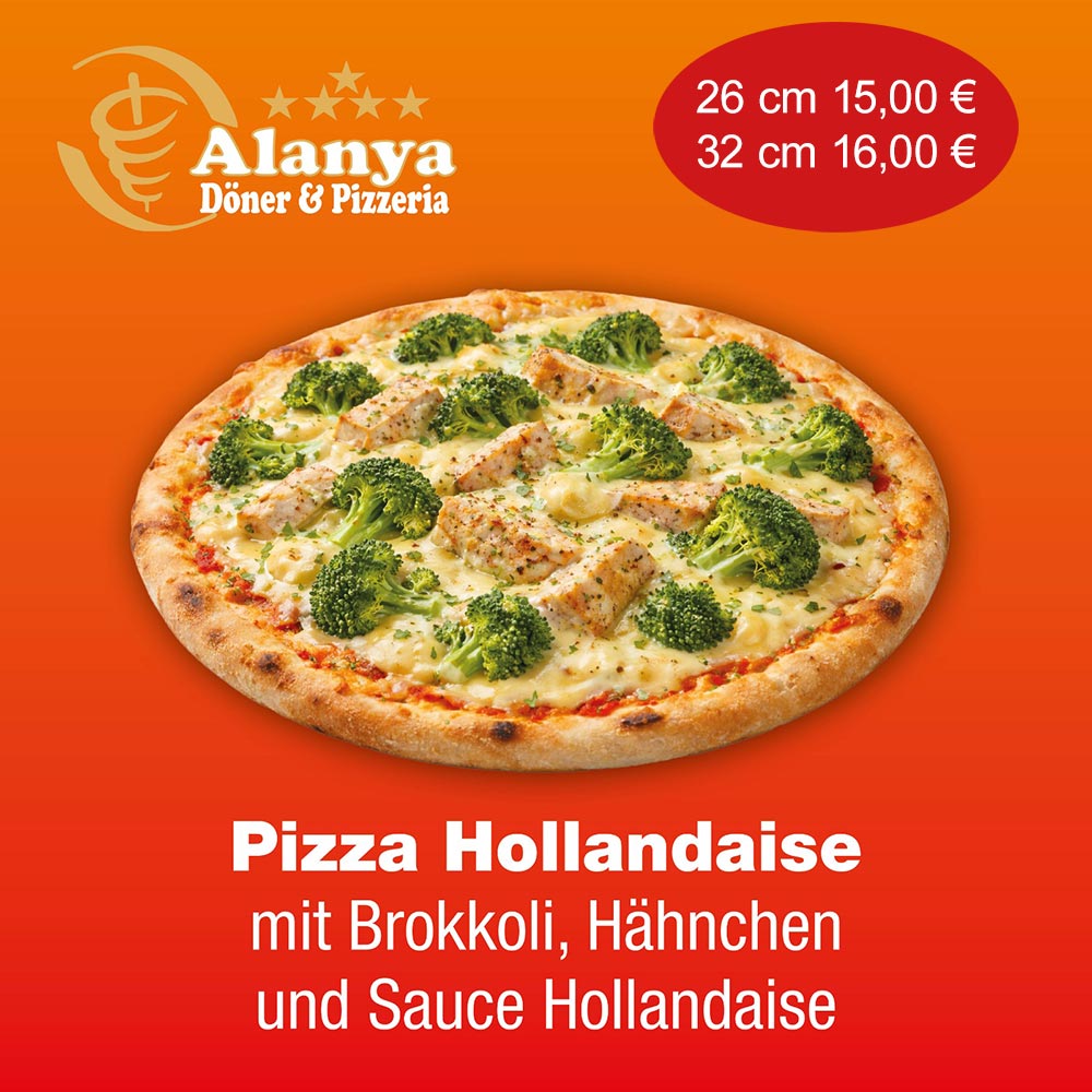 Pizza Margarita, Pizza Salami, Pizza Schinken, Pizza Prosciotto, Pizza Tonno, Pizza Scampi, Pizza Alanya, Pizza Hawaii, Pizza Istanbul